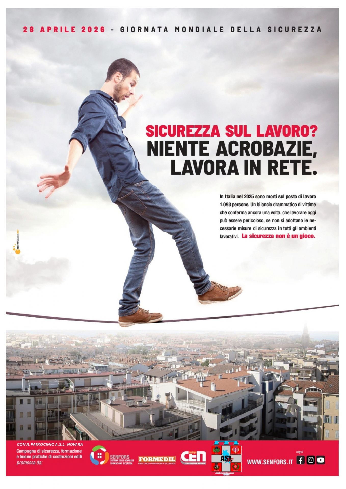 SENFORS (Novara): partecipa attivamente alle iniziative di sensibilizzazione. Per la giornata del 28 aprile 2026, si concentra sul tema "Sicurezza sul lavoro? Niente acrobazie, lavora in rete", focalizzandosi sulla prevenzione e sulla formazione continua per ridurre il drammatico bilancio degli incidenti.